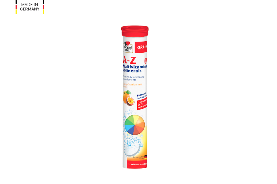 AZ Fizz có tên đầy đủ là A-Z Multivitamins and Mineral. Đây là sản phẩm thuộc nhãn hiệu Doppelherz, Queisser Pharma, Đức. Multivitamin được tin dùng tại hơn 35 quốc gia Châu Âu và 70 quốc gia trên Thế giới. Trong mỗi viên Multivitamin AZ Fizz chứa 21 vitamin và khoáng chất, phù hợp cho người mới ốm dậy.