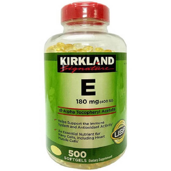 Viên uống vitamin E đỏ của Mỹ được sản xuất bởi Krikland. Hàm lượng vitamin E trong mỗi viên uống này là 180mg. Mỗi hộp có chứa 500 viên uống. Giá bán của vitamin E đỏ Mỹ là 395.000 đồng/lọ.